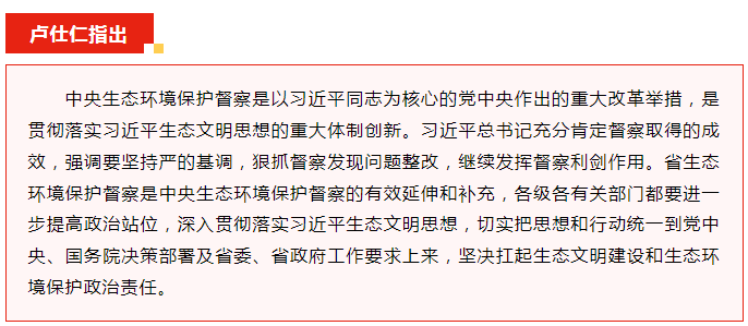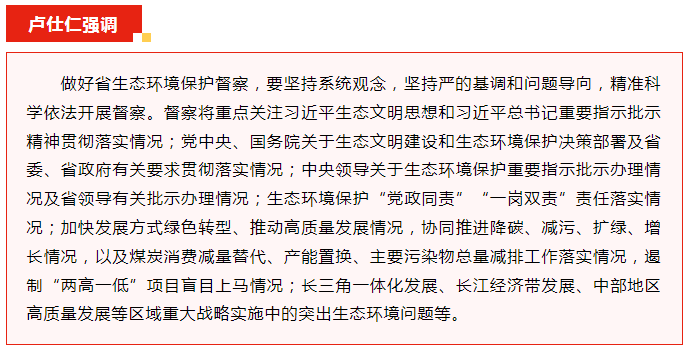 為深入貫徹習近平生態文明思想,認真落實黨中央、國務院關于生態文明建設和生態環境保護的決策部署,全面貫徹全國、全省生態環境保護大會精神,經省委、省政府批準,省第一生態環境保護督察組對池州市開展生態環境保護督察。5月30日,督察進駐動員會在池州市召開,督察組組長盧仕仁、副組長顧群分別就做好督察工作作了講話,市委書記朱浩東進行了進駐動員,市委副書記、市長賀東主持會議。