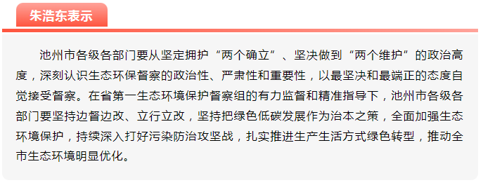 安徽省第一生態環境保護督查組進駐池州市調研督導池州市生態環境保護工作
